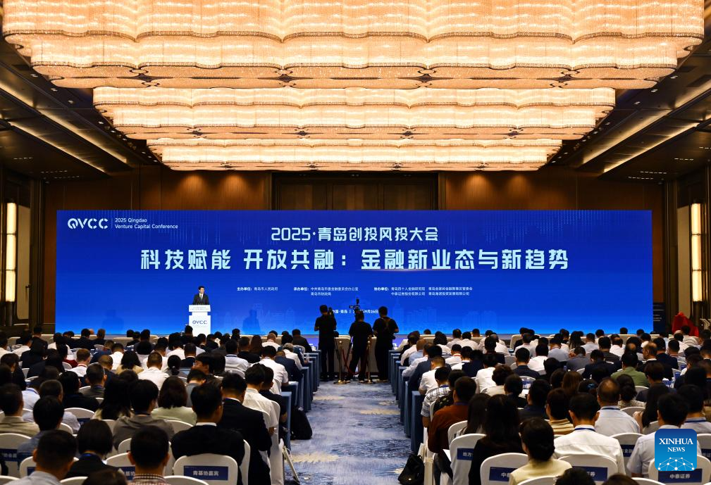 This photo taken on Sept. 26, 2025 shows a scene during the 2025 Qingdao Venture Capital Conference at Qingdao International Conference Center in Qingdao, east China’s Shandong Province. (Xinhua/Li Ziheng)