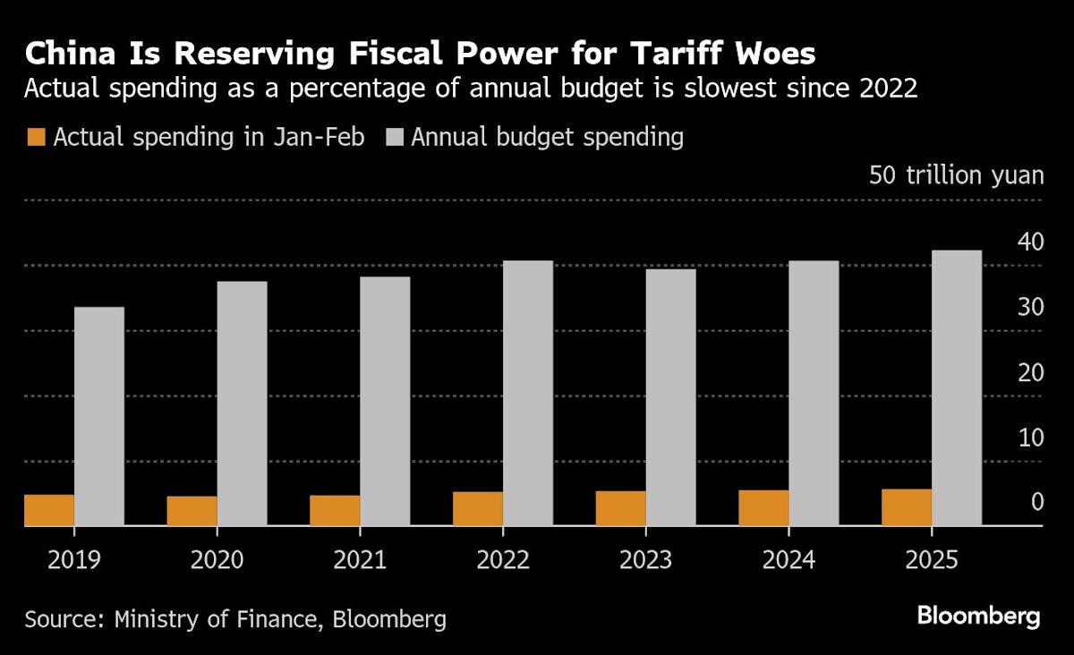 (Bloomberg) — China’s government appears in no rush to implement its budget, as Beijing preserves spending power to counter any damage inflicted by higher US tariffs.