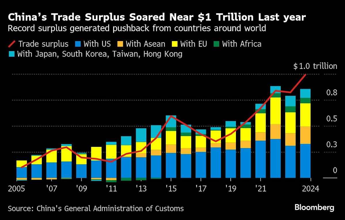 Exports meanwhile contributed to nearly a third of China’s economic expansion in 2024, when the country’s trade surplus soared to a record $992 billion.