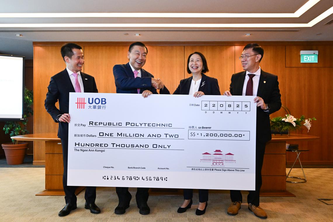 Republic Polytechnic principal and chief executive Jeanne Liew, speaking at a ceremony for the signing of the memorandum of understanding and the cheque presentation on Aug 22 at Ngee Ann City, said: “This timely generosity ensures that global opportunities remain accessible even to students from less privileged backgrounds who might otherwise be excluded.”