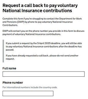 A Government spokesperson says: ‘Our new online tool will mean that people are able to make top-up payments after the 5 April deadline, provided they complete the call back request form ahead of that date.