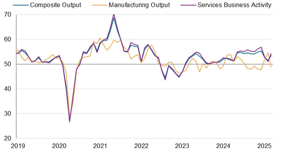 - Composite PMI 53.5 vs 51.6 prior
